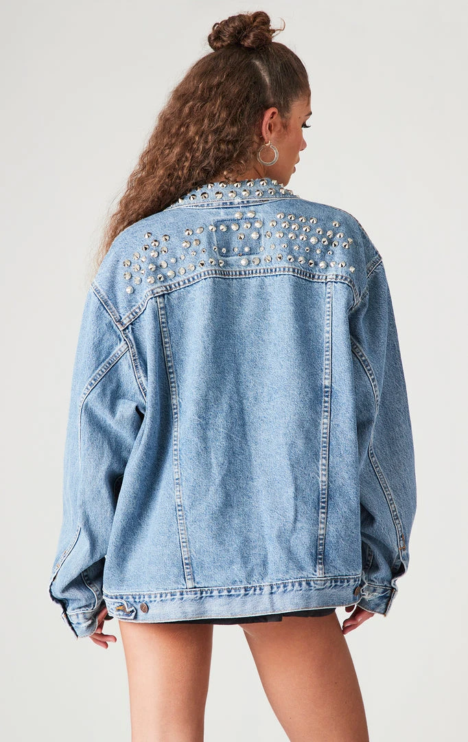 One-of-a-kind vintage denim jacket with allover spike stud embellishment. This vintage Levi’s denim jacket was studded by hand in Los Angeles by Furst of a Kind.