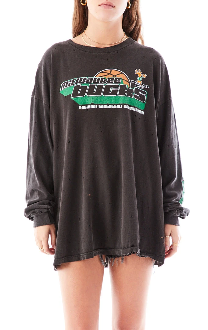 Furst of a Kind has found the perfect vintage long sleeve tee just for you. This vintage Milwaukee Bucks long sleeve t-shirt has been stonewashed for an ultra worn-in look and hand feel.