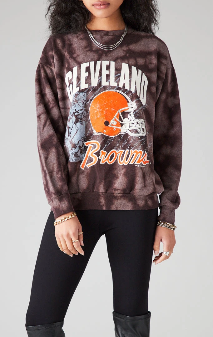 This vintage Cleveland Browns sweatshirt is serving all the looks, thanks to the unique bleach spiral pattern made for you by Furst of a Kind. This sweatshirt features a classic crewneck and relaxed fit.