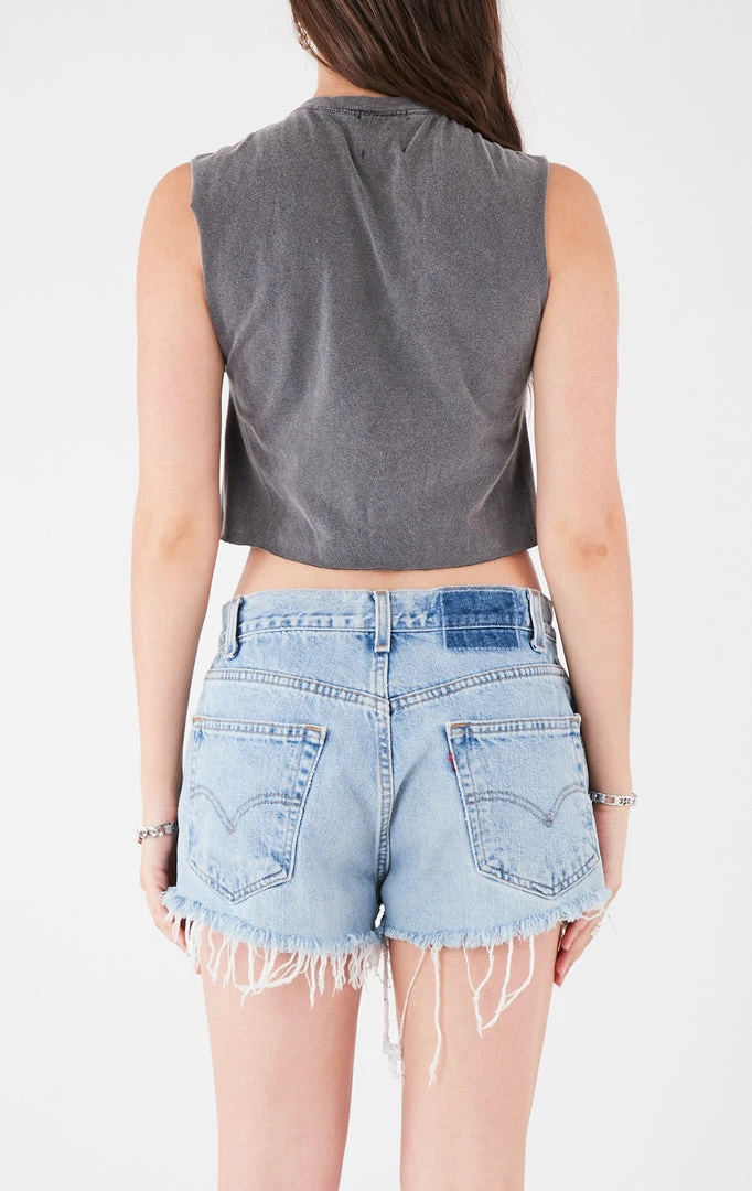 This vintageĀ Oklahoma StateĀ University chain lace up tee is a truly iconic Furst of a KindĀ fit.Ā Features a sleeveless cut, the perfect crop length and lace up detailing with silver chain. You can lace it tight or let it loose.