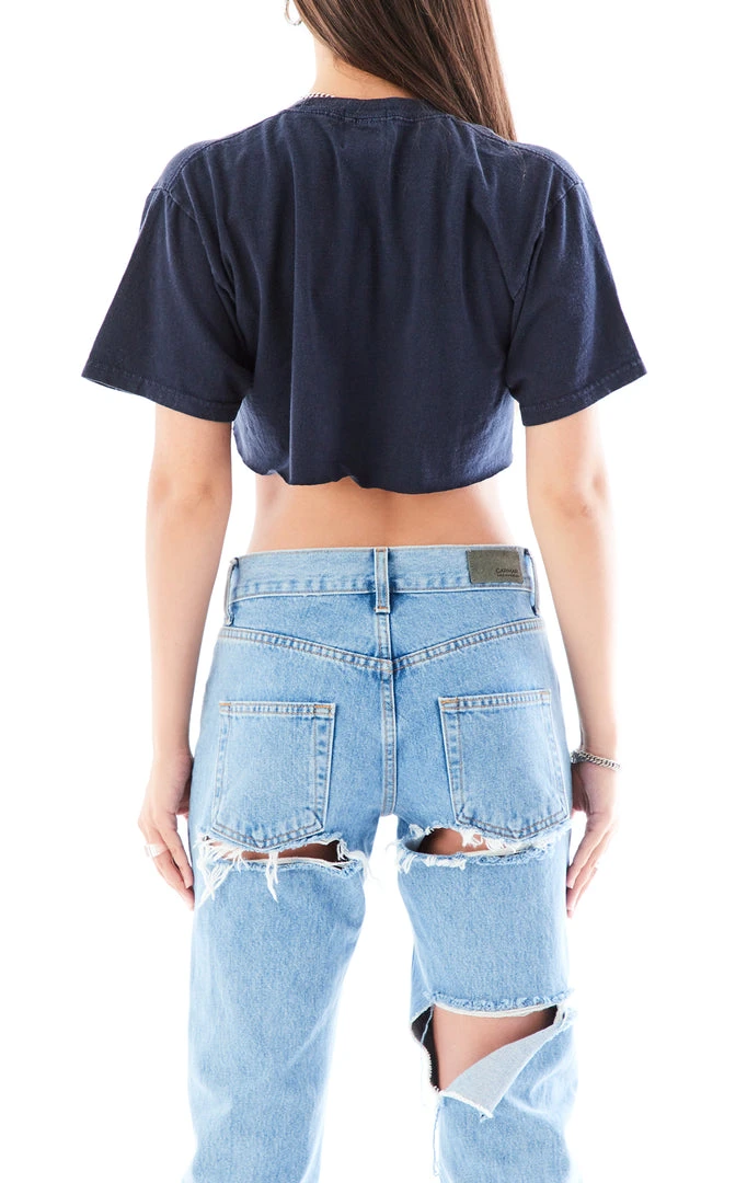This vintage Notre Dame University chain lace up tee is a truly iconic Furst of a Kind reworked style. It’s the silver chain lace up detail & perfect cropped length for us. Upcycled from a vintage short sleeved tee, this piece gives sustainability a good name & an even better look.