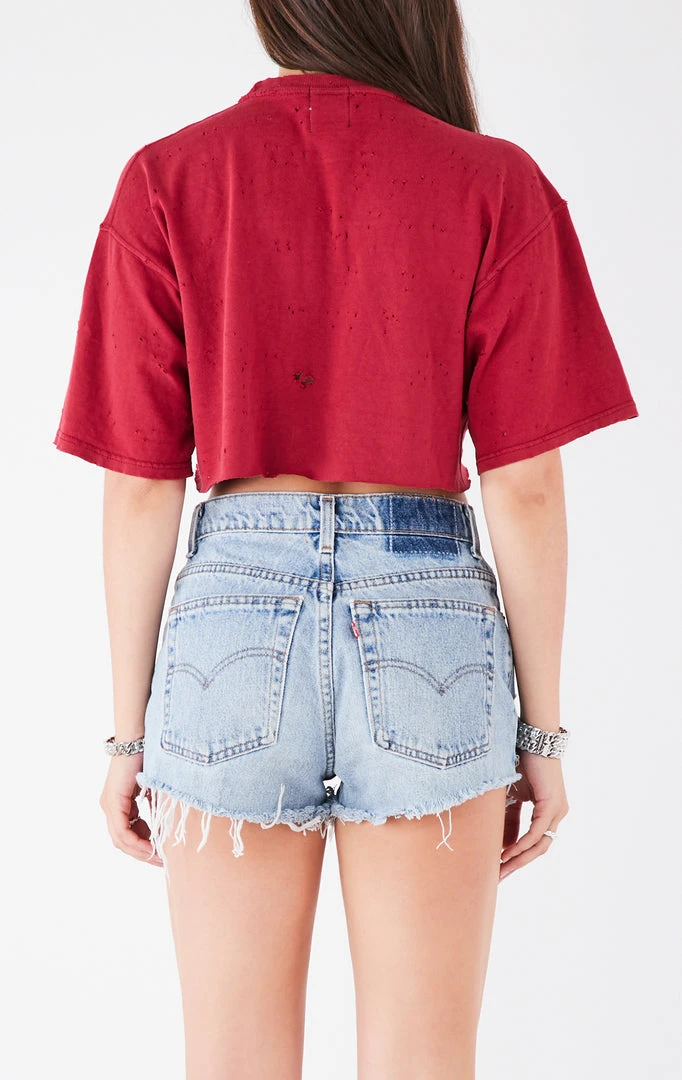 This vintage Florida State University chain lace up tee is a truly iconic Furst of a Kind reworked style. It’s the silver chain lace up detail & perfect cropped length for us. Upcycled from a vintage short sleeved tee, this piece gives sustainability a good name & an even better look.