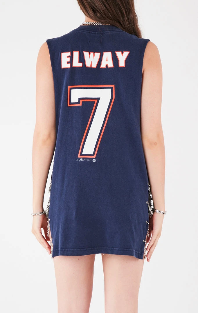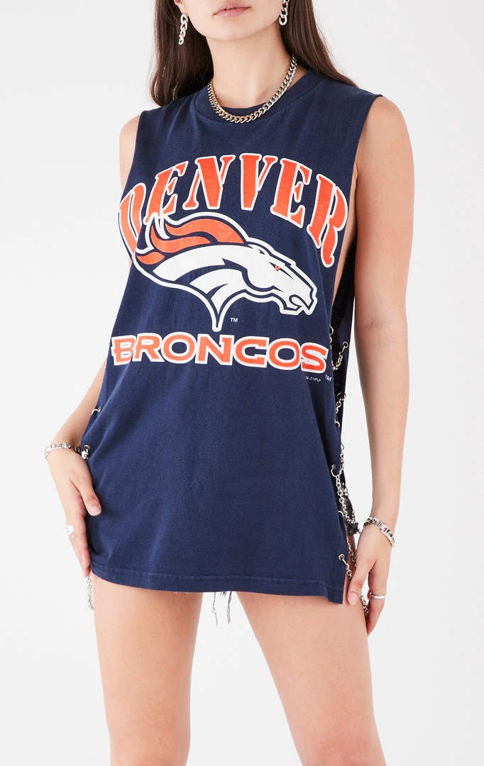This vintage Denver Broncos tee was reworked by Furst of a Kind. Upcycled in Los Angeles with an open cut at the sides and chain detailing.