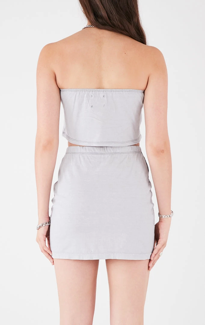 This one-of-a-kind set was designed by Furst of a Kind from a vintage New York Yankees tee. Reworked into a cropped chain neck halter top and skirt.Â