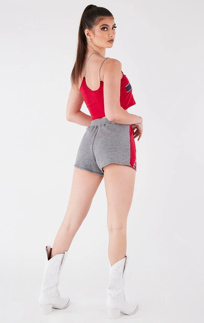 Furst of a Kind took a vintage University of Arizona tee and reworked it into a two-piece set. This set is complete with a one-shoulder double chain tank top and spliced shorts.