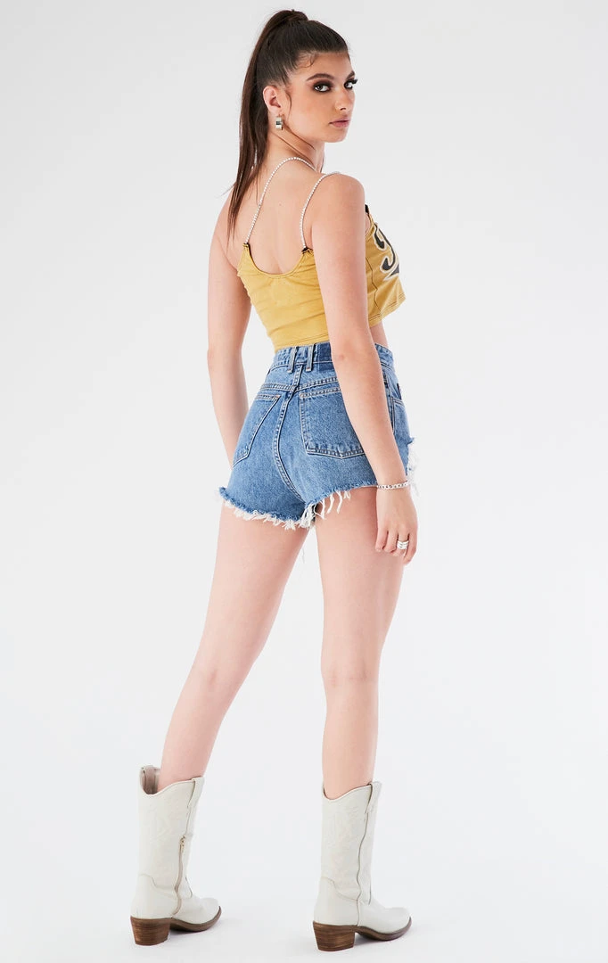 Furst of a Kind took this vintage Purdue University tee and reworked it into a priceless gem. This tank is complete with a one-shoulder cut out, cropped hem and double rhinestone chain straps.Â