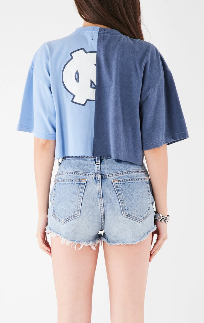 Reworked by Furst of a Kind, this University of North Carolina vintage tee was given extra love and attitude. It started with two vintage tees that were spliced together and finished off with chain ladder detailing across the front.Â