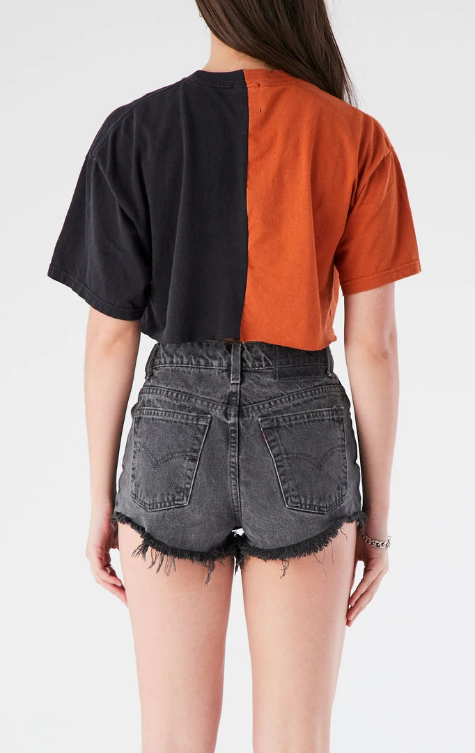 Reworked by Furst of a Kind, this University of TexasĀ vintage tee was given extra love and attitude. It started with two vintage tees that were splicedĀ together and finished off with chain ladder detailing across the front.Ā