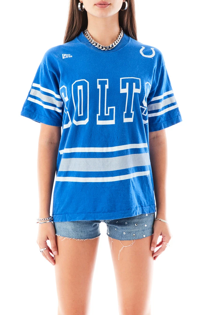 Keep your eyes on the prize: this vintage Indianapolis Colts collectible tee. This total one of a kind t-shirt was hand sourced by Furst of a Kind and is a true vintage piece from over 20 years ago, meaning you won’t be finding it anywhere else. So, we’ve kept it just the way it was found to preserve its true vintage qualities. It’s stood the test of time, and now it’s making its way to you.