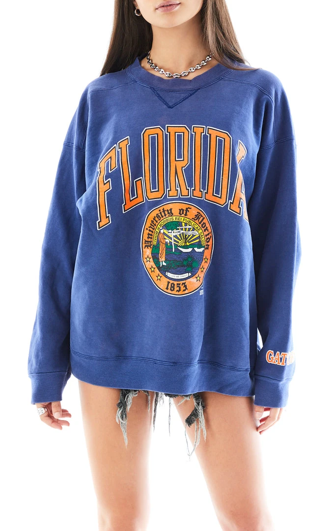 A classic vintage college sweatshirt. This University of Florida sweatshirt was sourced in Los Angeles by Furst of a Kind. We’ve kept it just the way it was found to preserve its true vintage qualities.