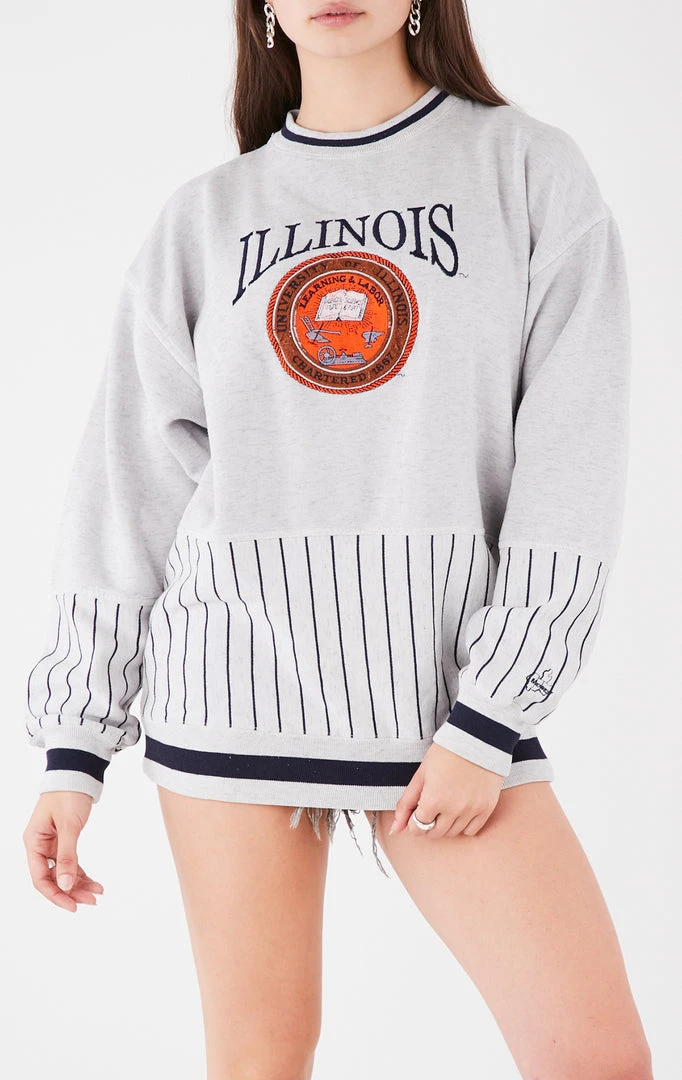 A classic vintage college sweatshirt. This University of Illinois sweatshirt was sourced in Los Angeles by Furst of a Kind. We’ve kept it just the way it was found to preserve its true vintage qualities.