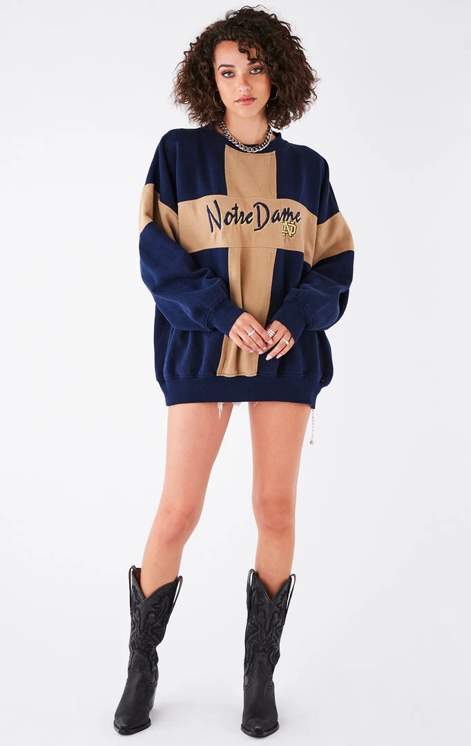 A classic vintage college sweatshirt. This University of Notre Dame sweatshirt was sourced in Los Angeles by Furst of a Kind. We’ve kept it just the way it was found to preserve its true vintage qualities.
