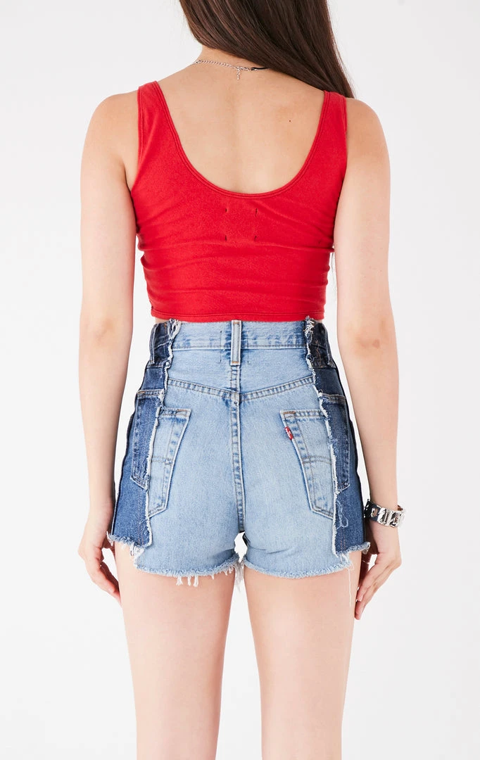 Furst of a Kind reworked this vintage Ohio State University tee. Features a tank top shape, cropped cut and curved ladder cut out with safety pin detail.Â