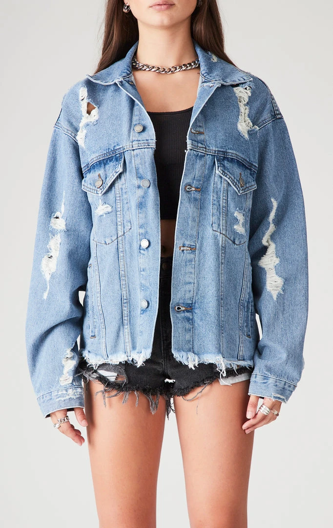 FURST OF A KIND VINTAGE JERSEY PATCHWORK STUDDED CROPPED DENIM JACKET VINTAGE DENIM JACKETS