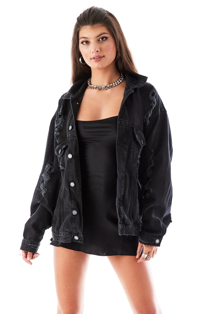It’s all about the back detail on this one of a kind repurposed black denim jacket. Furst of a Kind added a vintage New Jersey Devils graphic on the back and we are officially obsessed.