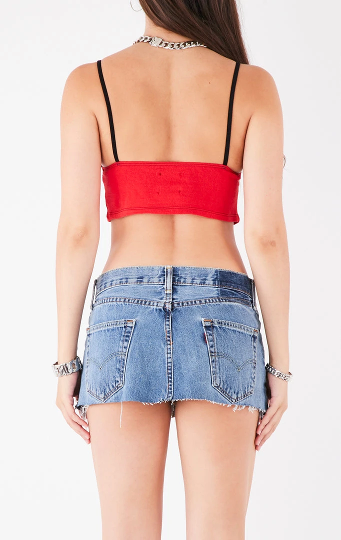Furst of a Kind took this vintageĀ Kansas City ChiefsĀ tee and reworked it into a tank top. This tank is complete with a bra neck shape, double front cut outs, safety pin detailing and a cropped hem.