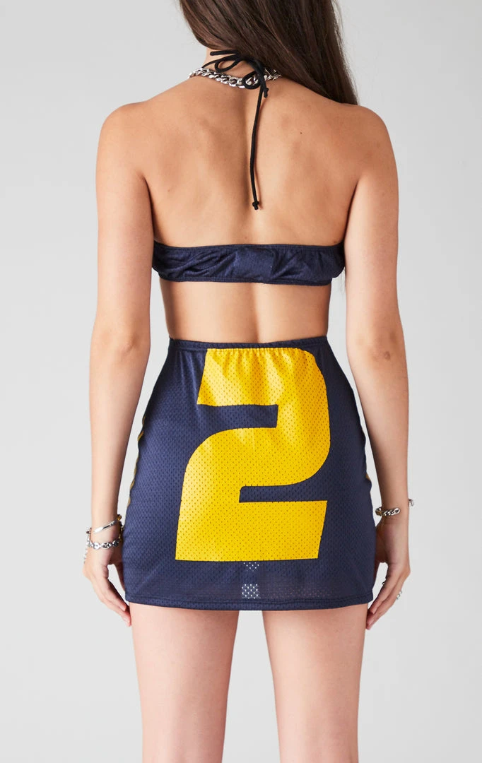 On the hunt for a totally bold, iconic lewk? You know you’ve come to the right place. This One of a Kind dress started out as a vintage West Virginia University jersey, until Furst of a Kind got ahold of it. This piece was reworked into the ultimate jaw dropping dress with fresh double side cut outs and a halter neckline. There’s no comparing this dress, your other vintage could NEVER.