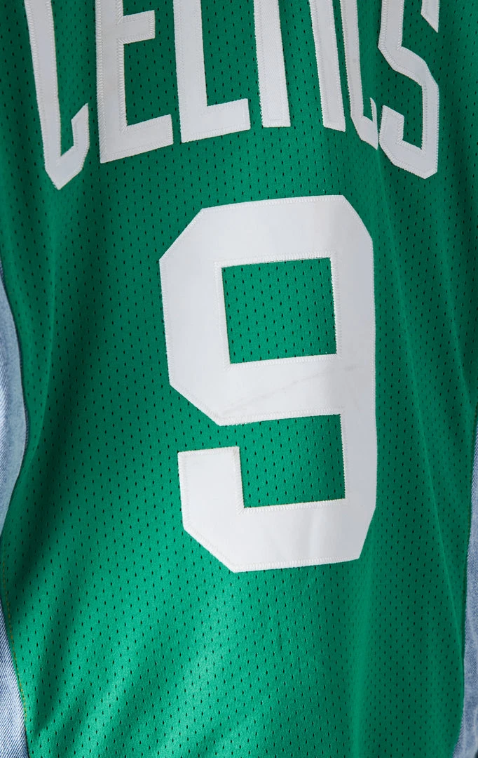It’s all about the back detail on this one-of-a-kind repurposed blue denim jacket. Furst of a Kind reworked this denim jacket with a vintage Boston Celtics graphic insert on the back.