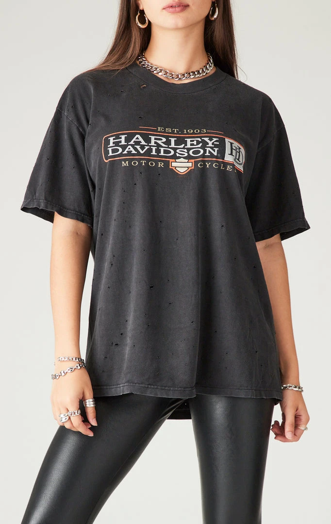 This vintage Harley Davidson tee is the secret to stepping up your vintage collection, and we know it. Whether you’re just starting your collection or have a serious obsession, you need this tee. Furst of a Kind stonewashed this style, giving it even more attitude and natural distressing.