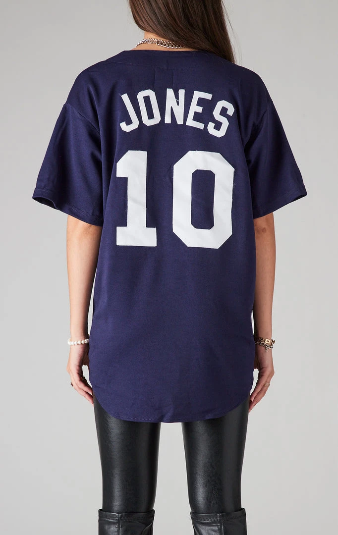 Style this vintageĀ Atlanta BravesĀ baseball jersey open or closed. Hand sourced for the perfect fit & fabric, then hard washed in Los Angeles by Furst of a Kind.