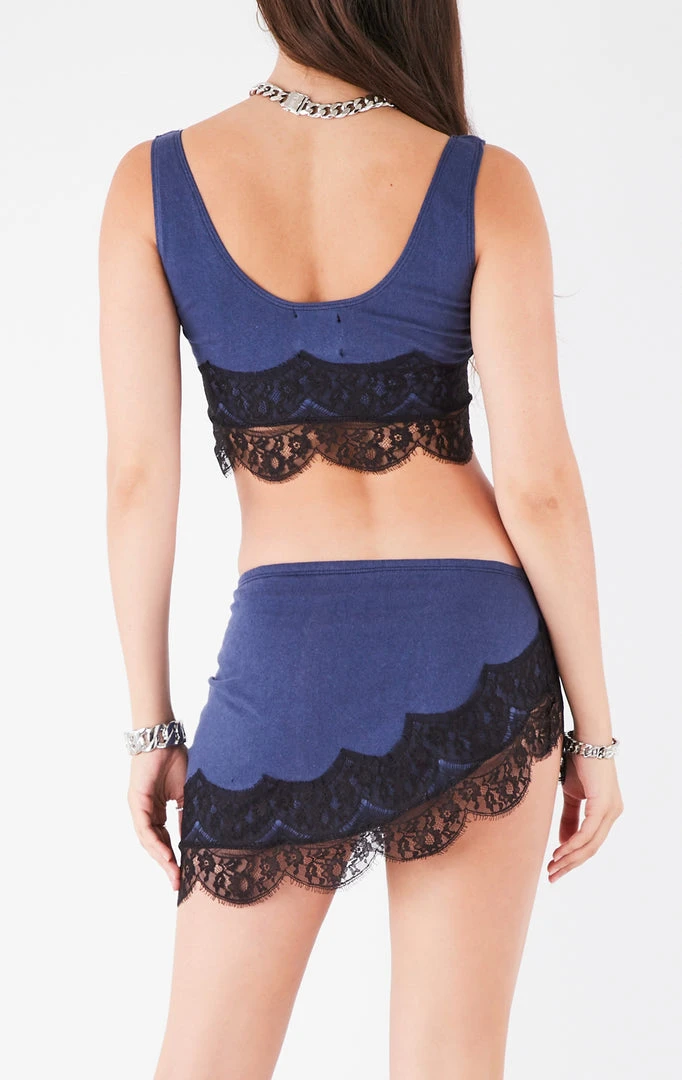 This vintage Tennessee Titans tee was upcycled by Furst of a Kind and reworked into a one-of-a-kind two piece set. This tank top and skirt set features lace trim.