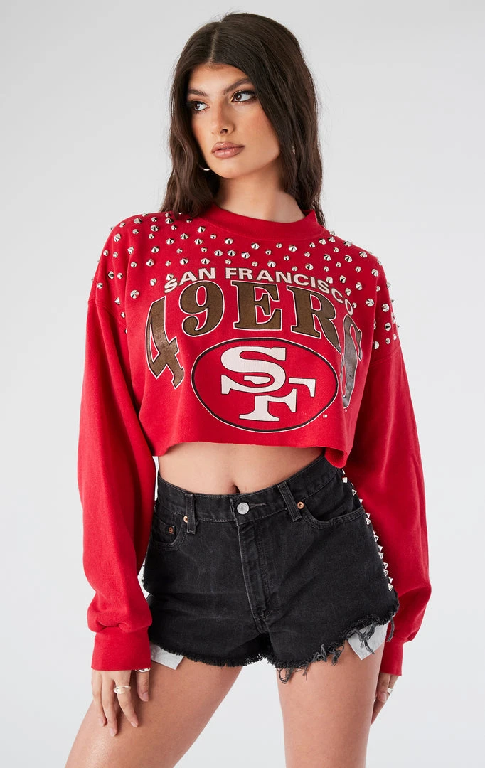This reworked vintage San Francisco 49ersĀ sweatshirt was updated by hand by Furst of a Kind with the perfect cropped cut and multiĀ stud detailing.Ā