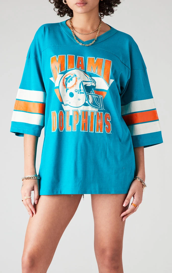 Totally iconic. The rare specialty vintage pieces are the top tier of the Furst of a Kind archives. This one-of-a-kind vintage Miami Dolphins tee is in its original condition and polished just for you. This tee is going to make your friends a little jelly, up to you if you want to share.