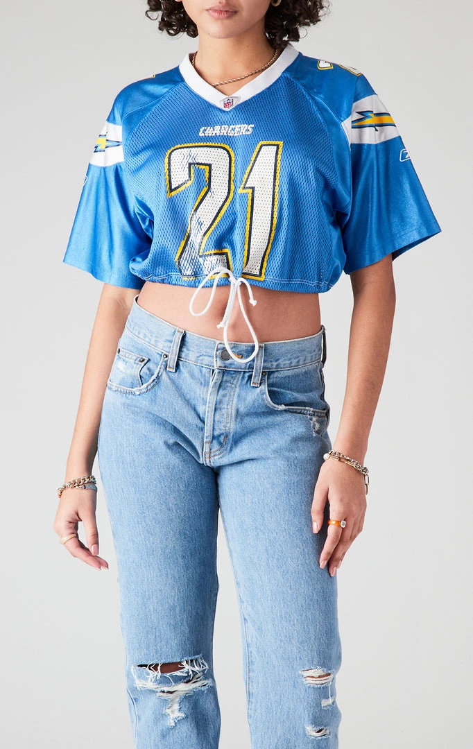 Cinch that waist, sweetie. You’re going to love the fit of this Vintage Los Angeles Chargers Jersey. This top was reworked by Furst of a Kind with a cropped cut and functional drawstring at the hem. Sporty & sustainable, say less.Â