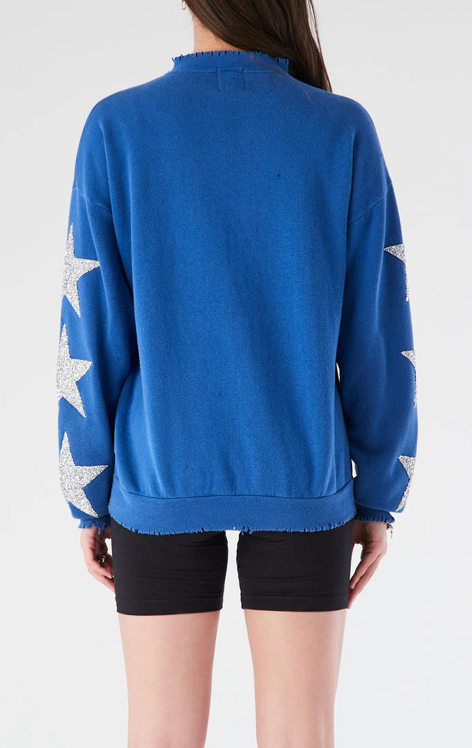 This Furst of a Kind reworked vintage St. Louis Rams sweatshirt is what dreams are made of. Silver rhinestone star patches adorn the sleeves or this handpicked vintage crewneck NFL sweatshirt.
