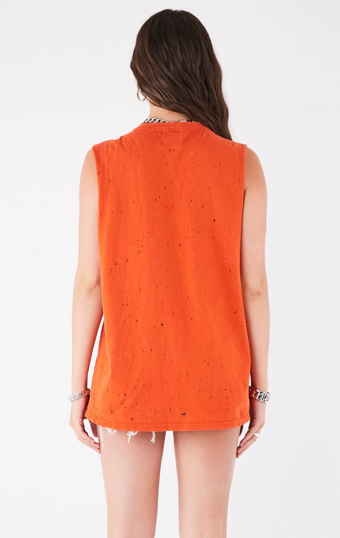 Furst of a Kind reworked this vintage University of Illinois tee. Features a dramatic sleeveless cut and curved ladder cutouts with safety pin detail.
