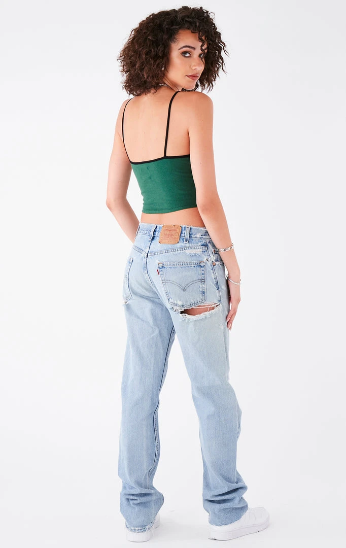 This vintage University of Miami tee was reworked into a tank top by Furst of a Kind. Features a crop shape and rhinestone fringe.Â