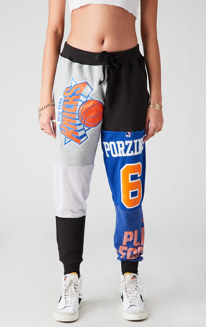 You need these reworked sweatpants from Furst of a Kind. Hand sourced, sewn & spliced, these vintage New York Knicks patchwork sweatpants are the epitome of cool. Featuring assorted vintage graphic inserts in a relaxed fit silhouette with pockets and drawstring closure.