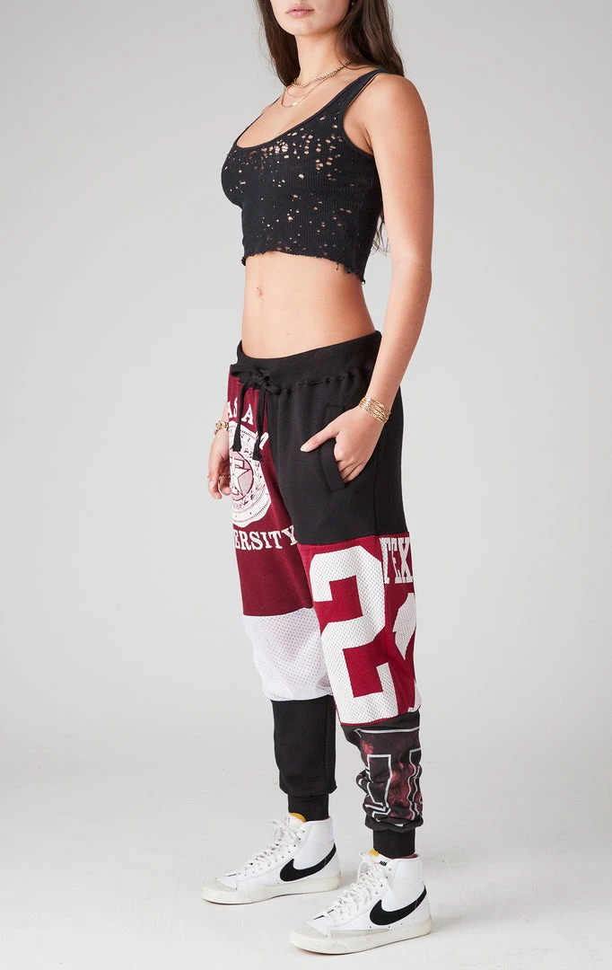 You need these reworked sweatpants from Furst of a Kind. Hand sourced, sewn & spliced, these vintage Texas A&M patchwork sweatpants are the epitome of cool. Featuring assorted vintage graphic inserts in a relaxed fit silhouette with pockets and drawstring closure. Style on the street or in the stands, the choice is yours.