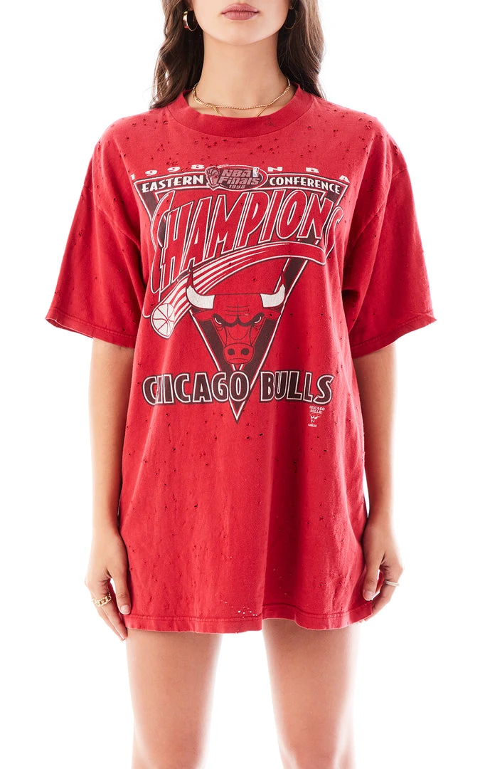 Whether you’re a fan or you just have good taste, a vintage tee is always a staple to add to your collection. This Chicago Bulls vintage Tee has been stonewashed for a worn-in feel and naturally distressed look. We call this a vintage treasure.Â