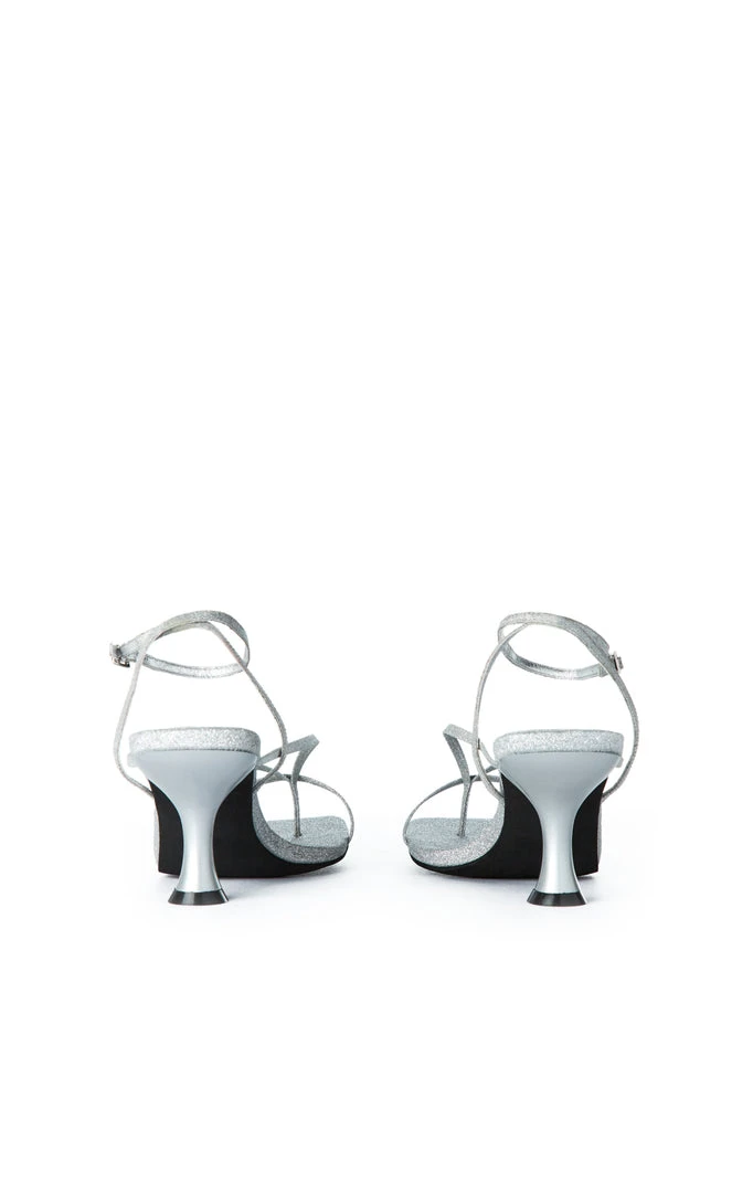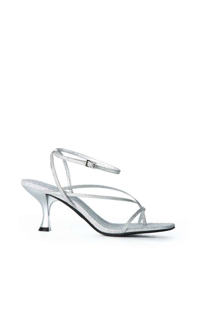 Life is too short. Buy the shoes. Fluxx Minimal Square Toe High Heel Sandal in Silver Glitter by Jeffrey Campbell.Â