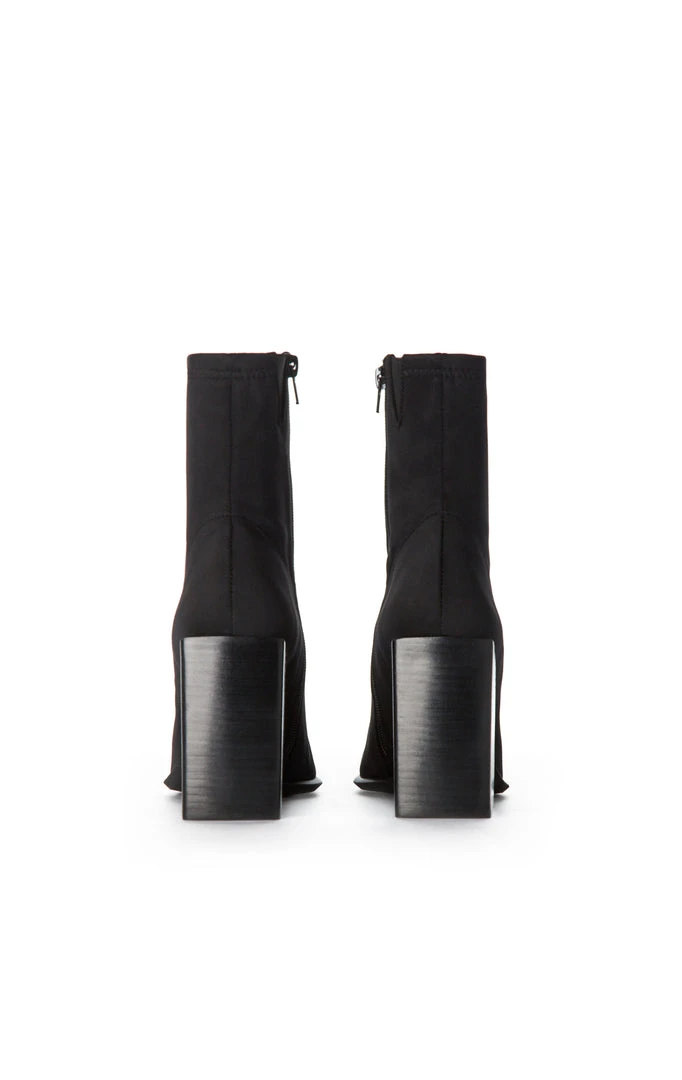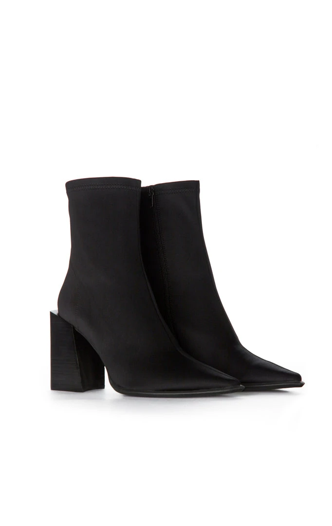 La-Siren Ankle Boot by Jeffrey Campbell. This neoprene ankle boot features a 3.5″ block heel, a pointed toe, and a side zip closure.Â