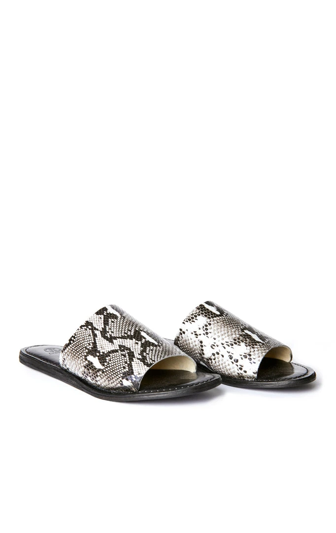 Snake Print Slide by N.Y.L.A Shoes. Snakeskin is a fashion neutral, you can’t go wrong. Featuring a full leather upper and memory foam leather insole. Your feet will thank us later.
